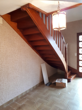 Grand espace vide et non exploité, mes clients ne savaient pas comment agencer et meubler leur entrée, dont l'espace sous l'escalier menant à l'étage.